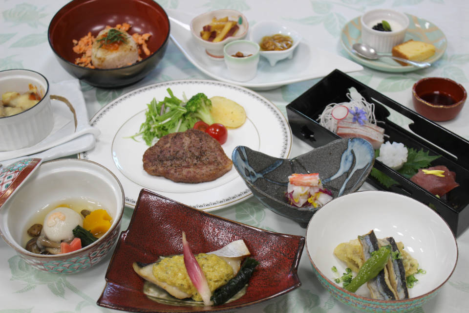 つきだて花工房のお料理は、料理人が厳選した地域の旬の食材を、一つひとつ心を込めて調理した「ふるさとの味」。